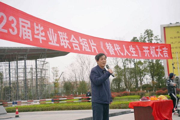 2023年3月12日,南充电影工业职业学院2023届学生毕业联合短片《替代人生》在学校大门广场上正式开机,校理事会秘书长邹鹏、党组织书记陈永龙、校长尼跃红、副校长何卫东、欧阳明、教务处、各系部负责人以及《替代人生》剧组全体主创人员参加了本次开机仪式。