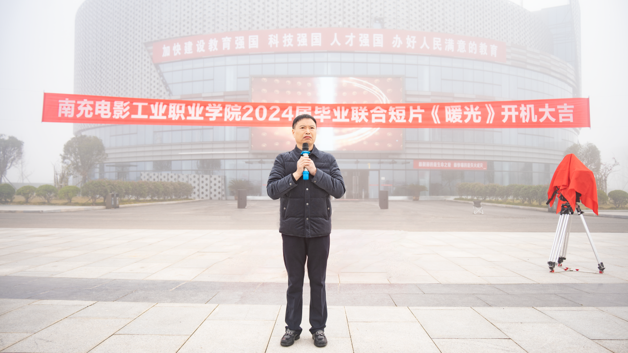 11月19日上午,南充电影工业职业学院2024届毕业联合短片《暖光》开机仪式,在学校星光广场举行,学校理事长寇德林、理事会秘书长邹鹏、学校党委书记陈永龙等领导出席了仪式活动,学校党政领导、全体剧组人员参加本次活动。活动由学校党委委员、副校长何卫东主持。