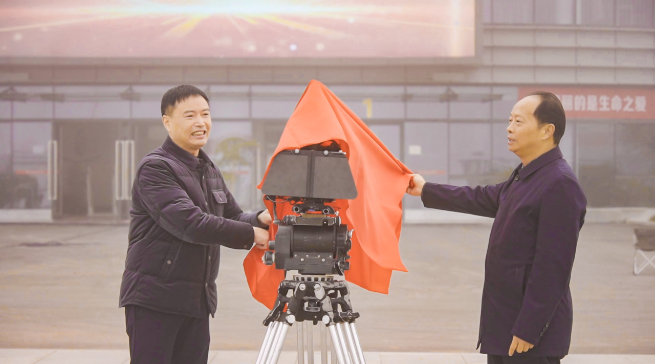 学校理事长寇德林和学校党委书记陈永龙共同揭开摄像机红布,为电影正式开机。