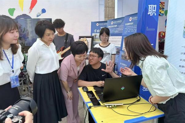 南充市副市长欧阳梅、市委宣传部部长廖雪梅、市教科体局局长赵爱华、仪陇县文旅局局长胡润等对我校办学规模、专业设置、产教融合、教学成果、学生就业等方面进行了详细地了解,尤其对动画系3D建模学生作品特别感兴趣,并要求学生动手实操。现场熟练的实操演示和专业生动的讲解赢得了在场领导、学生及家长的热烈掌声和高度评价。同时也对我校的办学理念、办学特色及办学成果给予了充分地肯定。