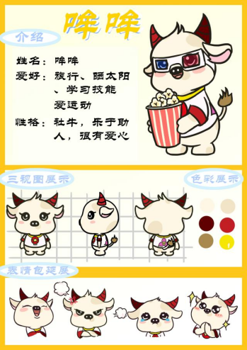 南充电影工业职业学院建立于2020年,而2020年正处于牛年,所以哞哞的原型取自中国黄牛的原型,是一头奶黄色的小牛。并且在古代农耕民族的信仰中,牛被认为是具有神秘力量的动物,希望学校今后能够用自己的特色发扬壮大,茁壮成长。