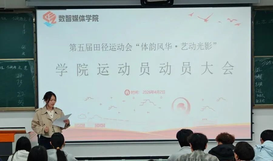 为积极备战学校第五届田径运动会,凝聚团队力量,激发参赛热情,明确备战目标,4月2日,数智媒体学院在5号楼322教室召开第五届田径运动会运动员动员大会,为学院运动健儿鼓劲助威。