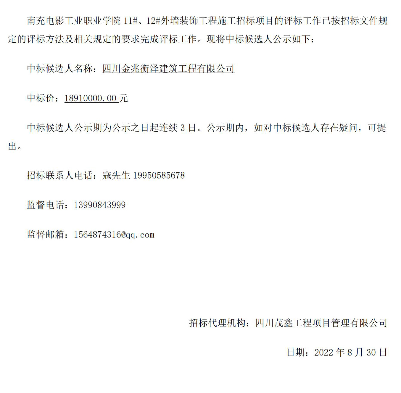 南充电影工业职业学院11#、12#外墙装饰工程施工招标公示