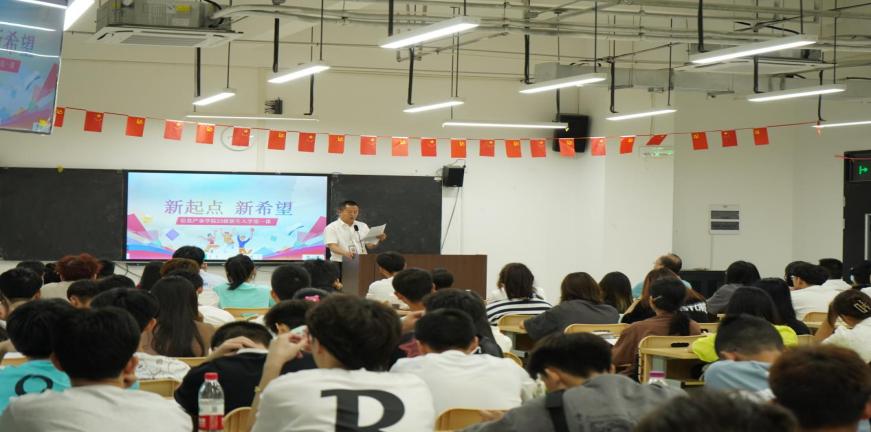 陈旭老师向新生详细介绍了学院专业特点、课程设置、实验设备、学习方法等,并与同学们亲切互动。