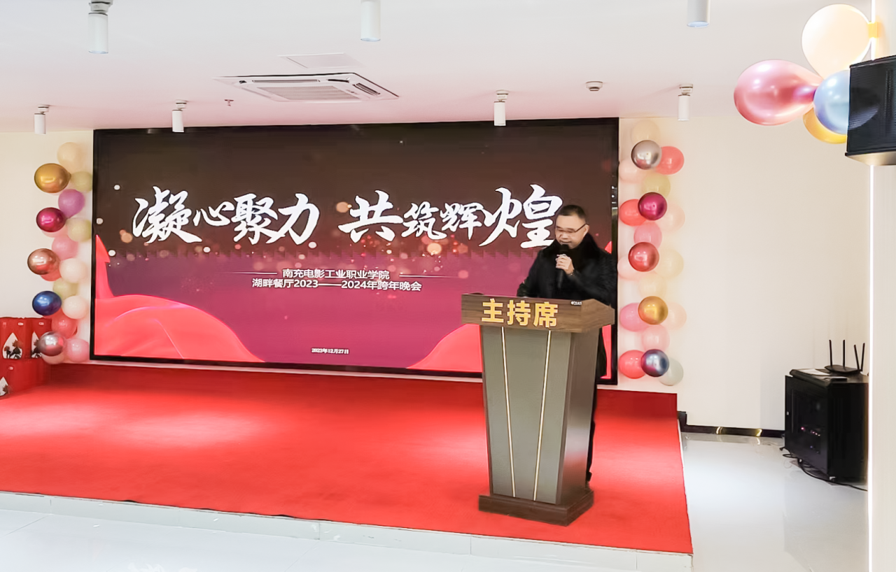豪情欢歌辞旧岁,喜气开篇迎新年。2023年12月27日晚,南充电影工业职业学院湖畔餐厅“凝心聚力,共铸辉煌”跨年晚会在餐厅四楼隆重举行。