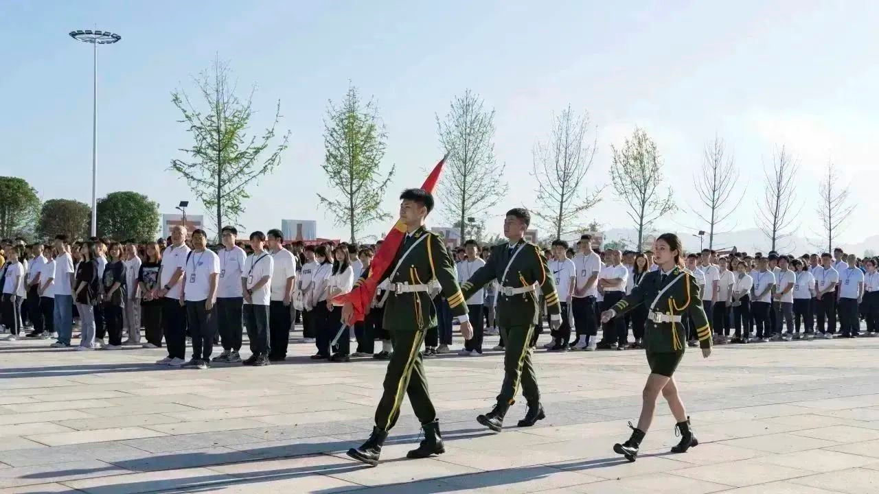 伴着雄壮激昂的国歌声,鲜艳的五星红旗冉冉升起,2023级新生开学典礼正式拉开序幕。