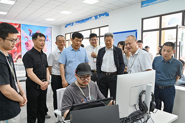 在学校理事长寇德林以及学校领导班子的陪同下,罗强一行深入学校实地走访参观了文艺中心、体育学院、智能制造学院、校园警务中心、图书馆、影视棚、AI制作中心等教育教学场所,还参观了学校体育文化艺术节的师生作品展览。调研期间,罗强与学校师生亲切交谈,了解专业课程设置、学校产教融合进展、人才培养模式以及毕业生就业工作等方面的情况。