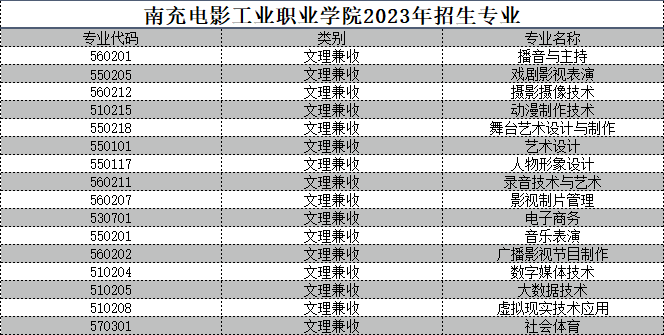 南充电影工业职业学院2023年统招招生章程!