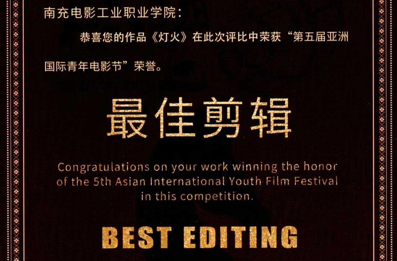 热烈祝贺我校作品《灯火》在第五届亚洲国际青年电影节中荣获“最佳剪辑”荣誉